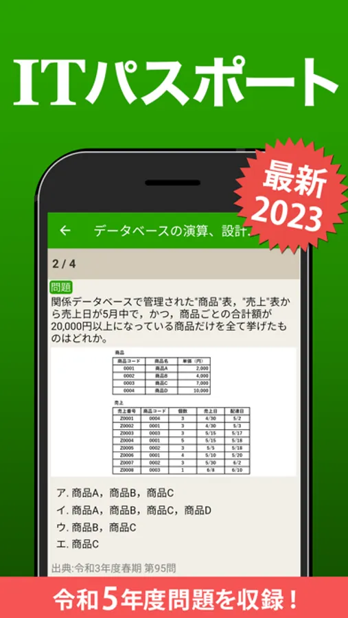 最新の令和5年度分の過去問題も収録しました!ITパスポート試験を受けるなら、このアプリを今すぐダウンロード!