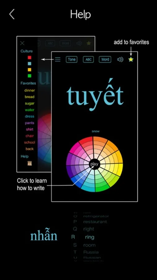 You can select the word in alphabetical order (English meanings) by clicking “Word” in the menu bar. Basic everyday Vietnamese words!