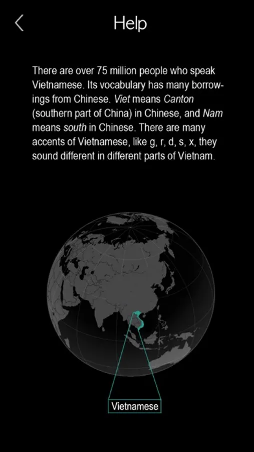 There are over 75 million people who speak Vietnamese. Its vocabulary has many borrowings from Chinese. Viet means Canton (southern part of China) in Chinese, and Nam means south in Chinese. There are many accents of Vietnamese, like g, r, d, s, x, they sound different in different parts of Vietnam.