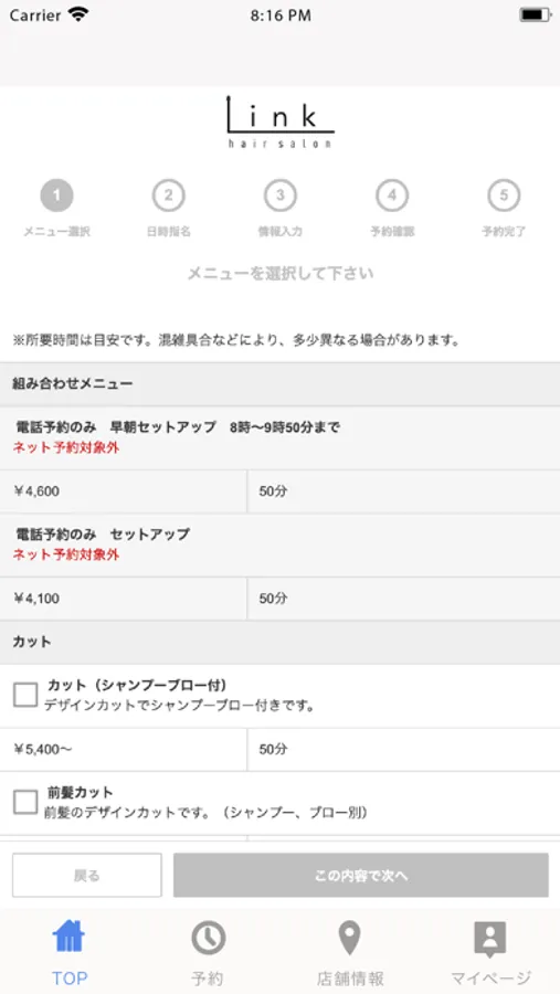 指名予約にも対応しているので担当スタッフのスケジュールを確認してからの予約が可能です。