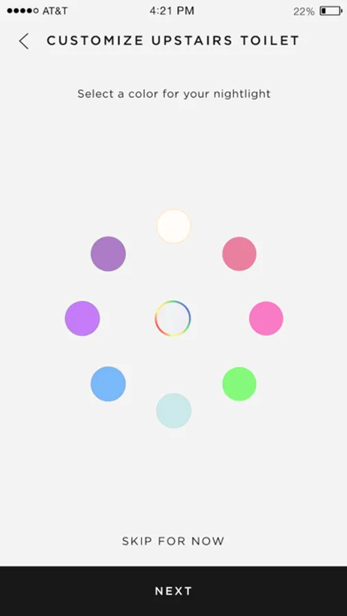 Use the app to name and control multiple PureWarmth Heated Toilet Seats, choose between low, medium and high seat temperature, pick from a wide array of colors and brightness levels for nightlight, and schedule when the temperature and nightlight will turn on and off. The app itself can be set to dark or light mode. In addition to the app, basic functions can be controlled using buttons on back of mounting base.