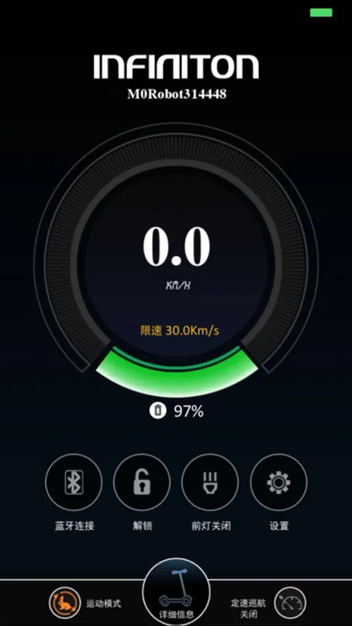 This is an intelligent electric scooter app. The APP communicates with the vehicle via Bluetooth. The APP can view detailed information of the vehicle and set vehicle parameters.