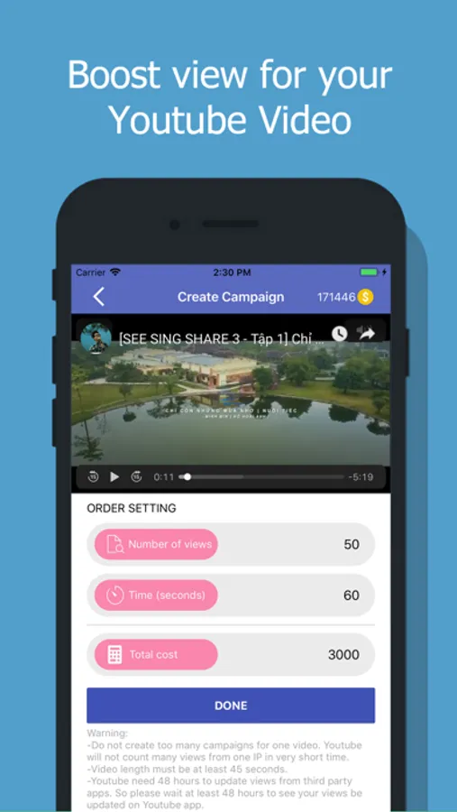 UView - View4View does NOT offer the ability to buy views as it is against YouTube policy. We only a platform to help your video reach out to people, and they can watch any videos which they feel interested in.