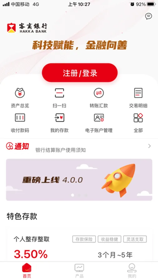 客商银行支持用户在线开通II类账户,实现绑卡、充值提现功能,购买存款、理财等金融产品,满足用户多元化、个性化金融需求,让智慧金融服务触手可得。优化功能