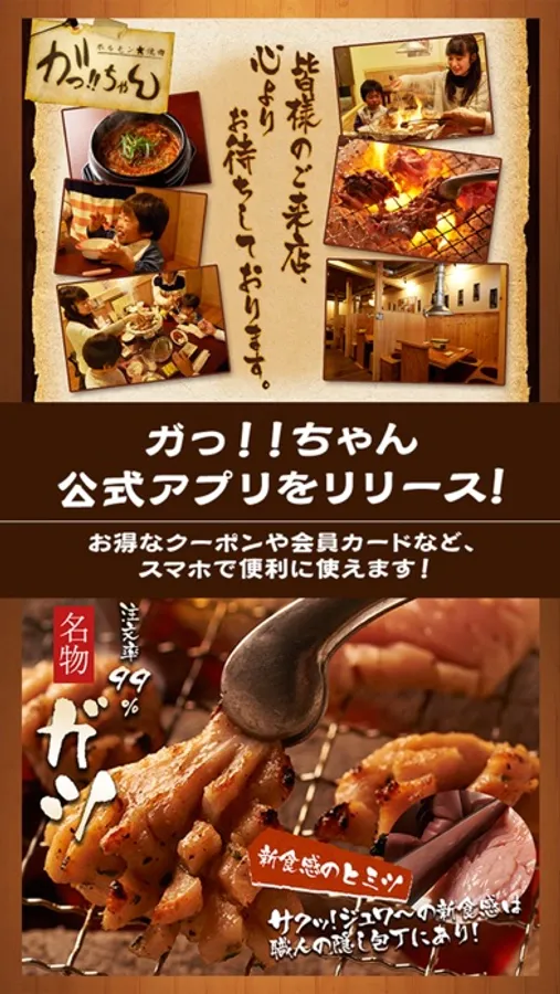ホルモン・焼肉 炭焼 ガっ!!ちゃんの公式アプリをリリースしました!