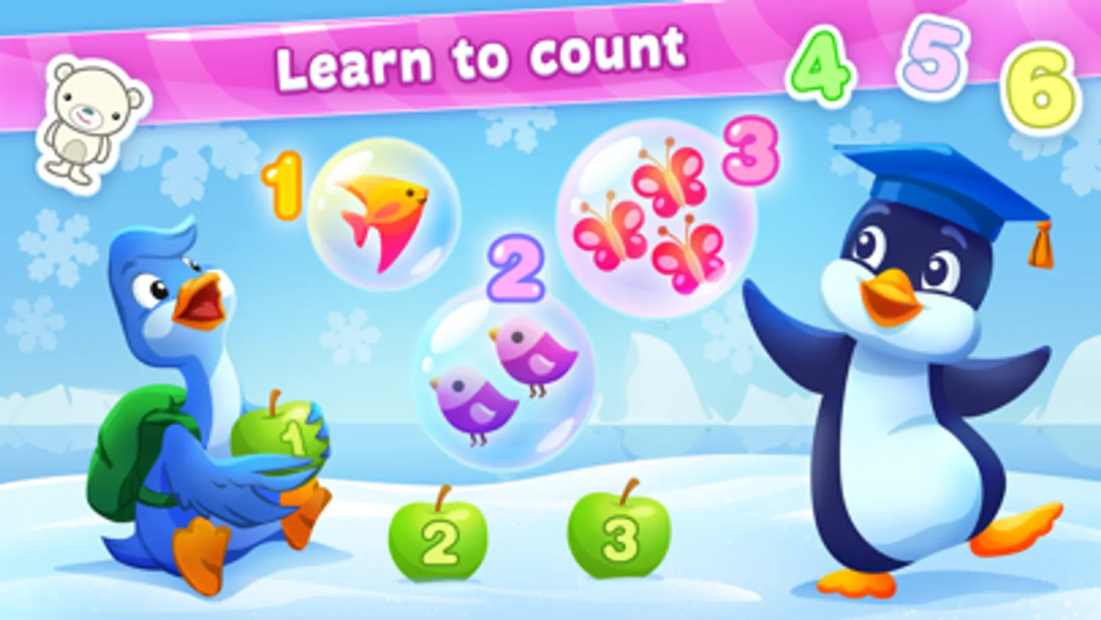 Learn counting, geometric shapes, numbers and arithmetic with Pengui. Forget about boring learning and play interesting educational games!