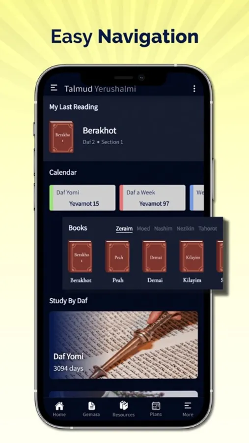 The Talmud Yerushalmi texts and Jewish commentaries are provided in Hebrew and English (some Sederem not translated yet to English).