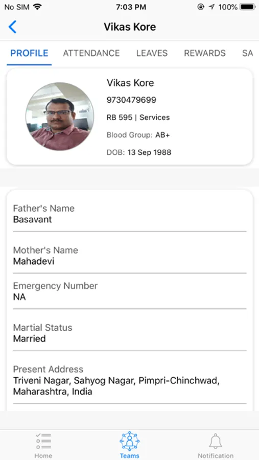 Details listed within the app include their name, resident address, contact information and department in which they work. This particular section can be customized as per the needs of the employer.