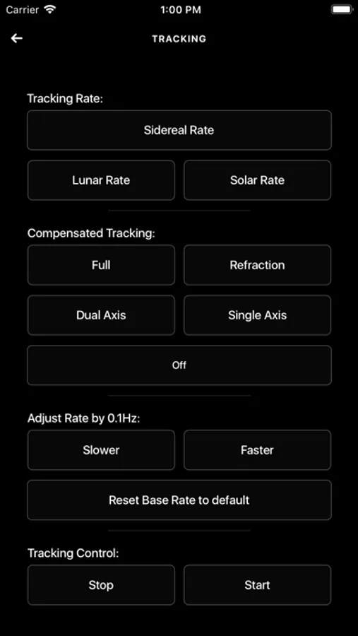 • Gotomote also allows to set tracking rate, compensated tracking, adjust rate, switch tracking control.