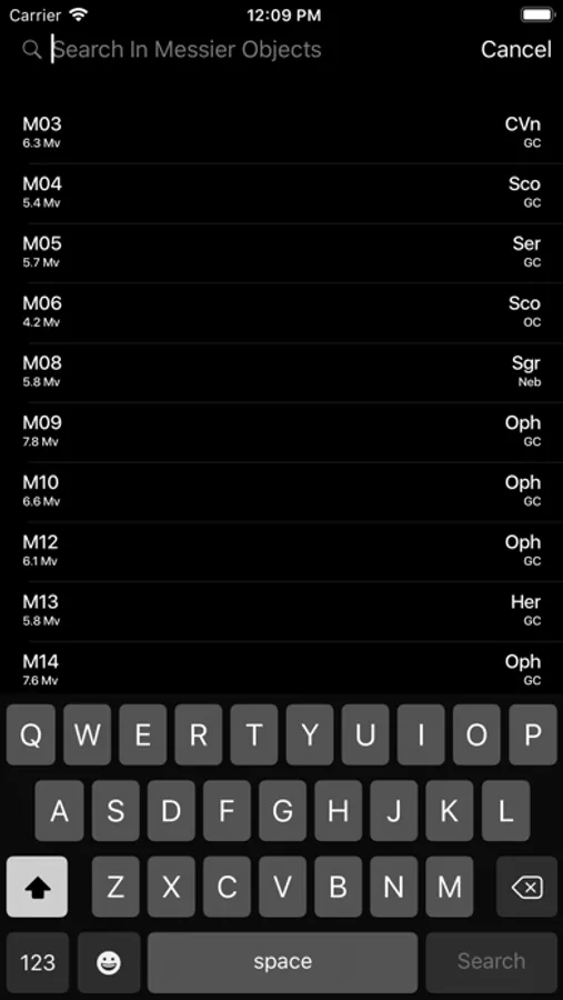 • App has a database of Quasar, Messier and a vast database of Galaxies with a named Bright Star catalog.