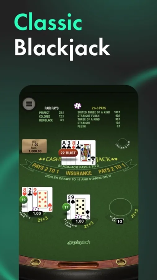 As mentioned above, you can enjoy lots of different types of Blackjack and Roulette. There’s something for everyone on this premier online Casino app.