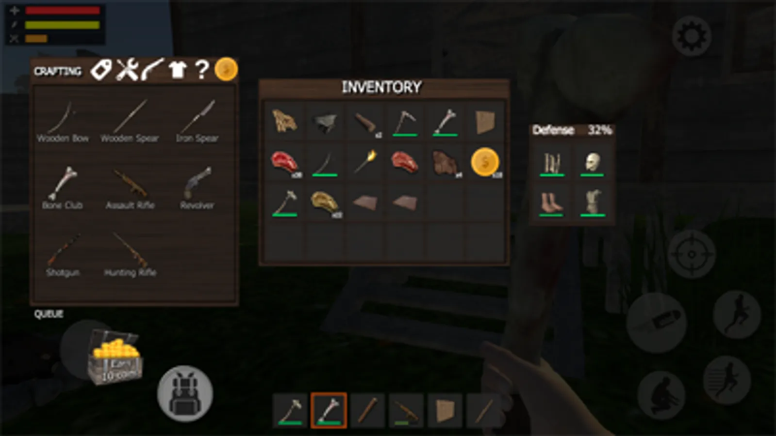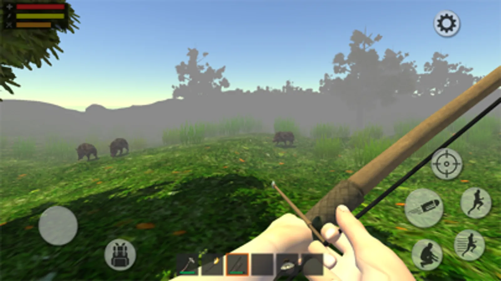 Get resources and food, craft items for hunting and protection, build your home and all kinds of fortifications, do not forget to monitor health, hunger and thirst. Do your best to SURVIVE!