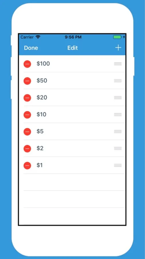 You can select the currency you want or edit the fields to match your country currency or to whatever you want to apply via the Edit Mode. No matter of how many types of banknotes and coins your currency has, the freedom is with you to set for your needs.