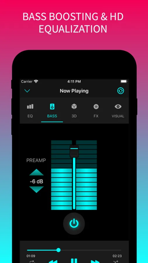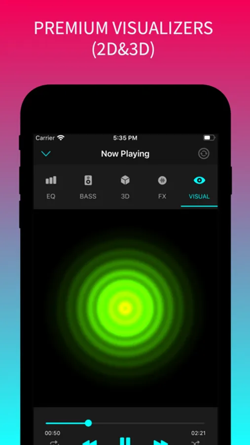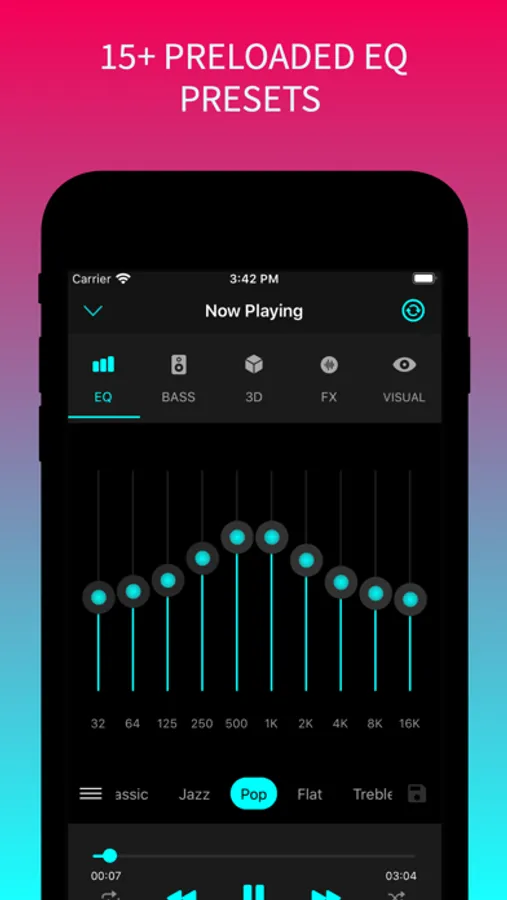 Create awesome music experiences through high definition Bass Boosting and EQ Amplification. This app comes with a low frequency (Bass) Booster and a 10-band Equalizer with tunable controls. App also includes a 3D spatializer option which is supposed to create a unique experience when listening to music. For the equalizer, we have preloaded 15+ presets (Normal, Classic, Dance, Flat, Acoustic, Electronic, Heavy Metal, Hip Hop, Jazz, Pop, Rock etc.). In addition, you can create your own custom presets (premium feature). This app also has built in audio visualizations, designed to boost your audio visual & listening experience.