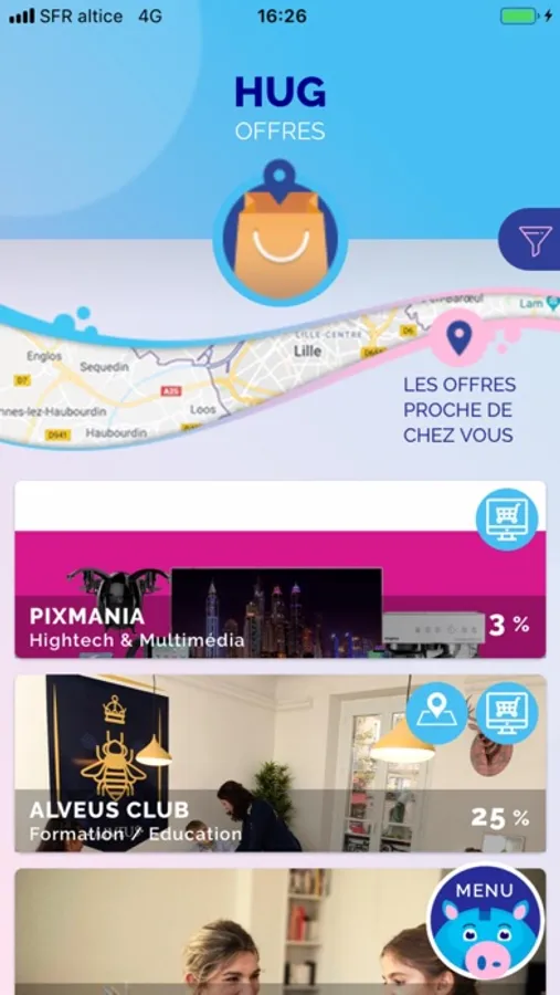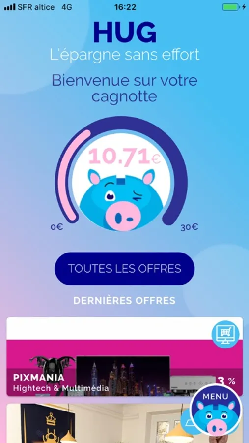Ces remises sont versées en euros sur votre cagnotte HUG dès qu’un achat en carte bancaire aura lieu chez un de nos partenaires.