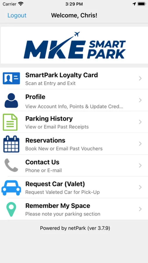 Customer portal for access to MKE SmartPark located at Mitchell International Airport in Milwaukee, WI, providing: