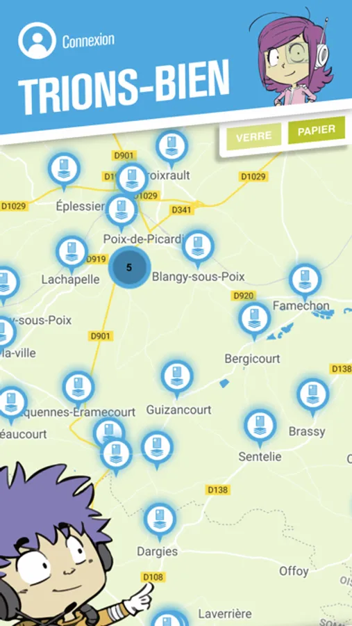 Vous souhaitez consulter la carte des bornes de tri pour le papier, le carton, ou le verre..? L'application Trinoval / CCPV "Trions Bien" vous permet de consulter les horaires de collecte de votre commune de la Somme ou de l'Oise, et de consulter les consignes de tri.