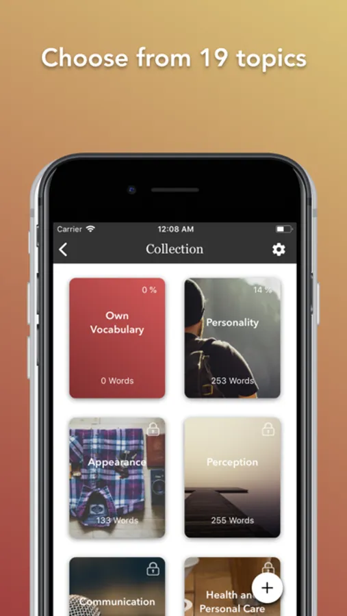 Each topic contains some 220 of the most frequently used words. In total you will be able o learn almost 4000 German words!