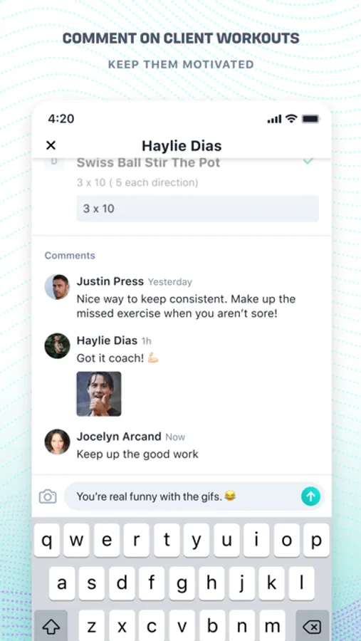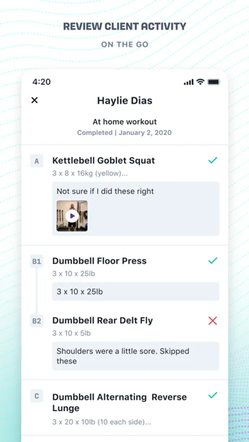 • Receive push notifications when clients send messages, complete workouts or post comments on workouts