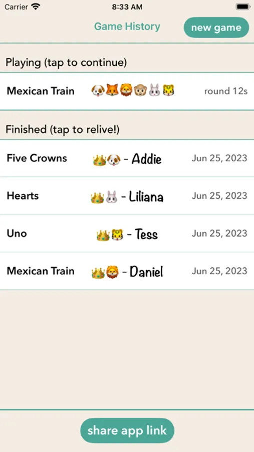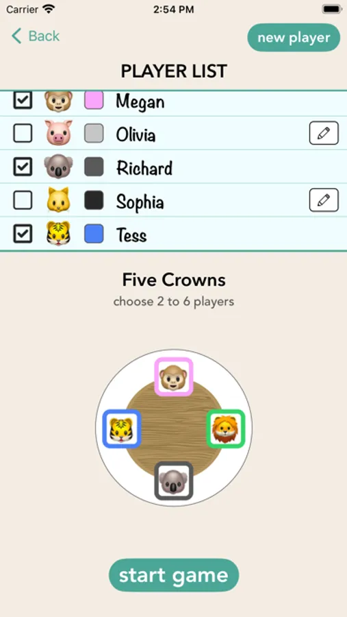 • Add fun to your family game nights by choosing an animal and color to represent each of you while accurately keeping score.
