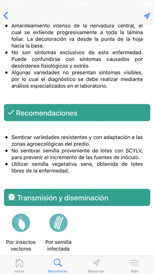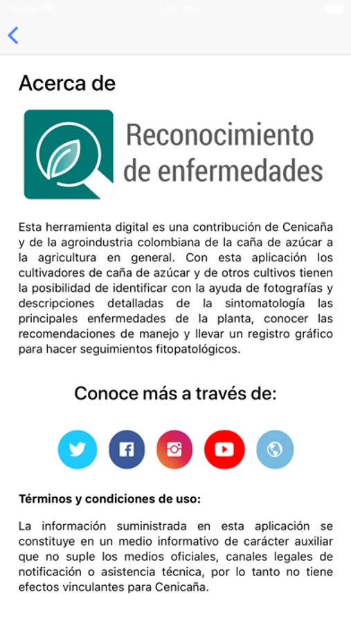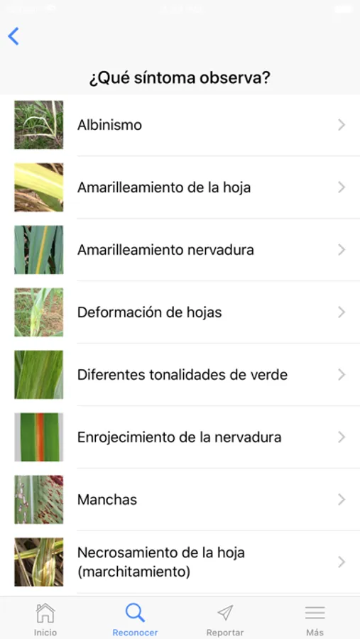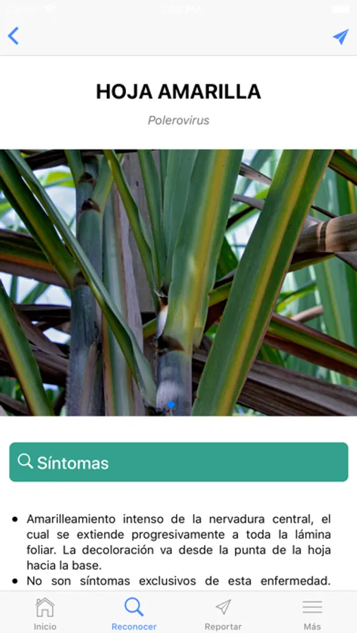 Herramienta que facilita el reconocimiento de las enfermedades que afectan el cultivo de caña de azúcar en Colombia mediante la identificación de síntomas y su diferenciación con otros factores que causan síntomas similares en el cultivo.