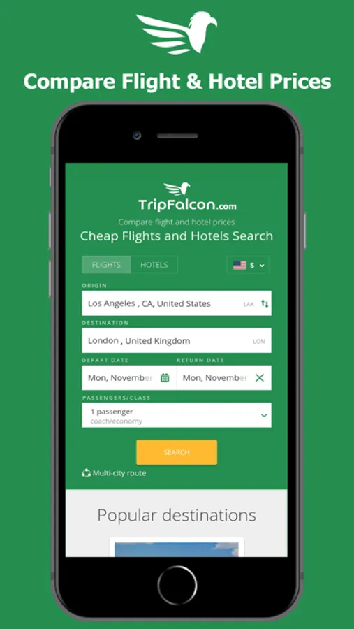 Download TripFalcon app for free, find best travel deals, save your money and enjoy your next trip.