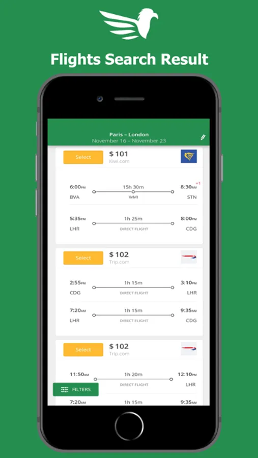 - Filter search results according to your preferences: number of stops, baggage, connecting airports, airlines, airports, online travel agencies and many more.