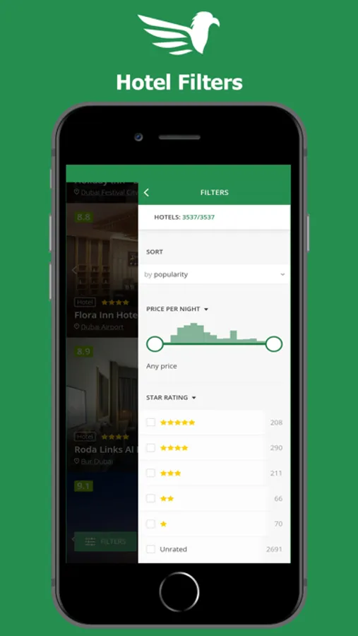 - Easily sort your search results according to price, popularity, guest rating, star rating, location and discount.