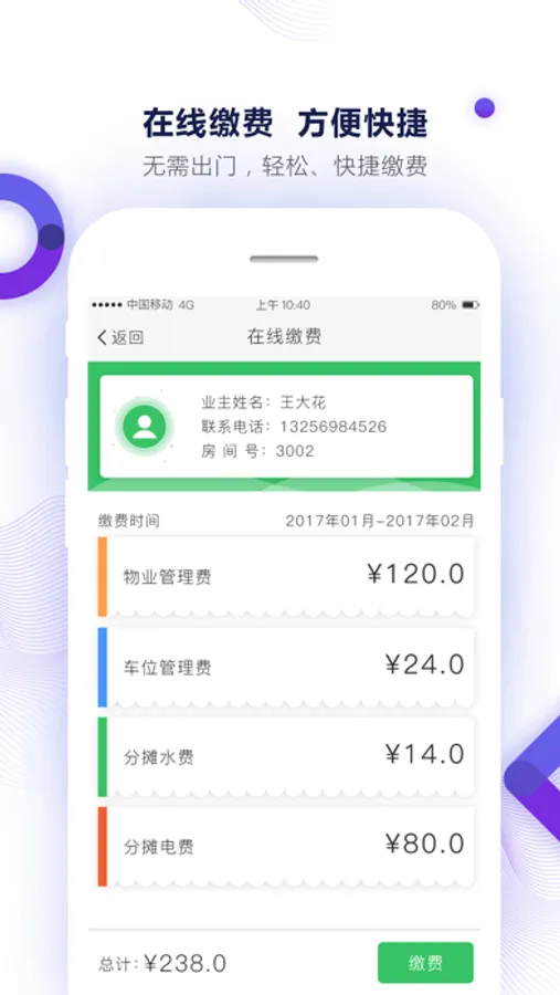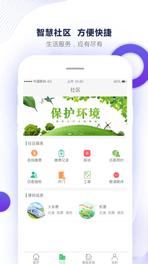 社区服务为您提供社区公告、在线缴费、缴费记录查询、访客预约、访客授权、报修、投诉、开门、派单查询、社区广告等
