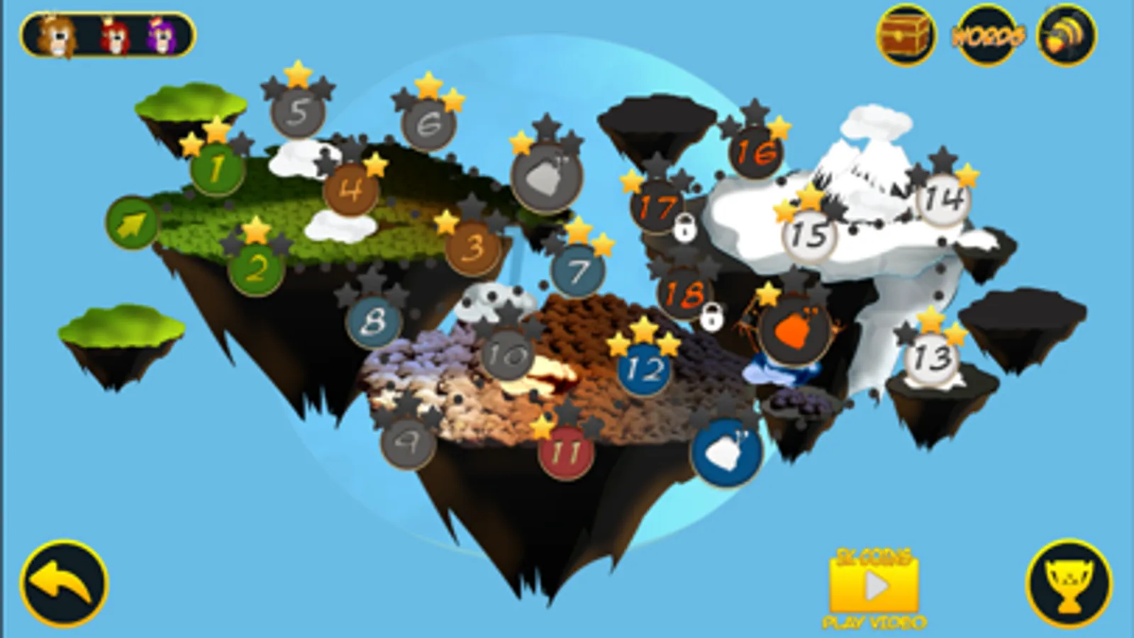 -Search and collect letters to find the hidden words that will allow you to access the next level