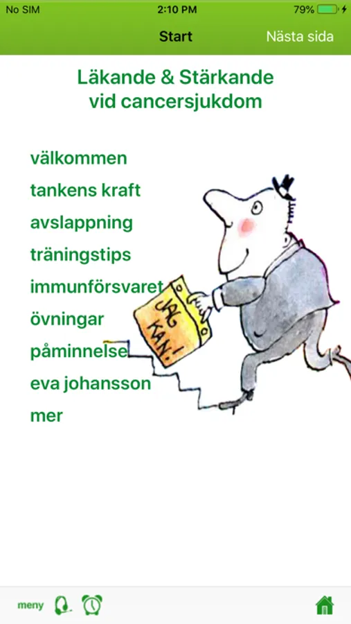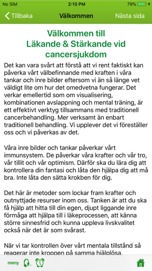 Den här appen är ett stöd för att orka med sig själv och alla behandlingar under en tuff period i livet. Ett stöd och en hjälp för att bygga kraft, tro, mod och tillit. Tanken är att du som cancerpatient ska få hjälp att hitta din egen, djupt liggande inre förmåga att läkas, känna större sinnesfrid och kunna uppleva livskvalitet också när det känns som svårast.