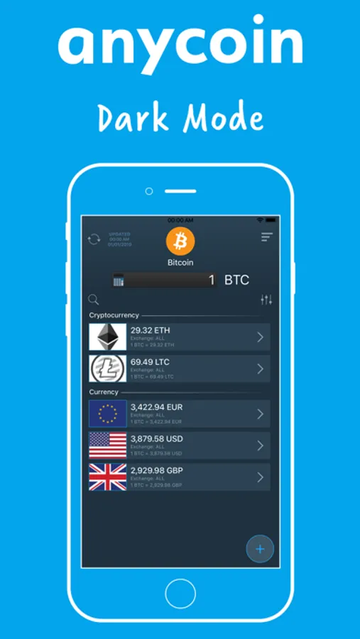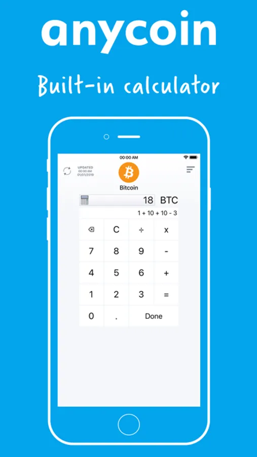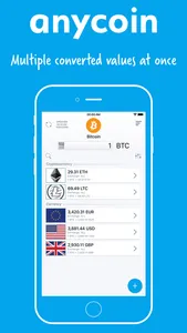 Real-time updates for every exchange rate guarantee the best accuracy. Insert your preferred amount in the built in calculator and view the results for multiple currencies and cryptocurrencies at a glance, you can also add, subtract, divide and multiply as much as you want. Quickly calculate prices in seconds! Monitor up to 50 currencies and cryptocurrencies of your choice! No matter if you are a shopper, a trader, an investor, a miner or just passionate about new technologies and financial markets Anycoin will help you in your journey.