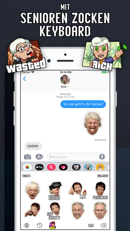 Also, worauf wartest du noch? Lade dir die App runter und hol dir die Senioren Zocken Emojis auf dein Handy!
