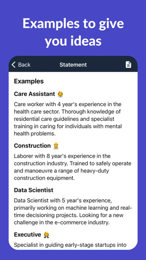 Looking for inspiration? We have examples for each CV section to give you intelligent ideas on what to include.