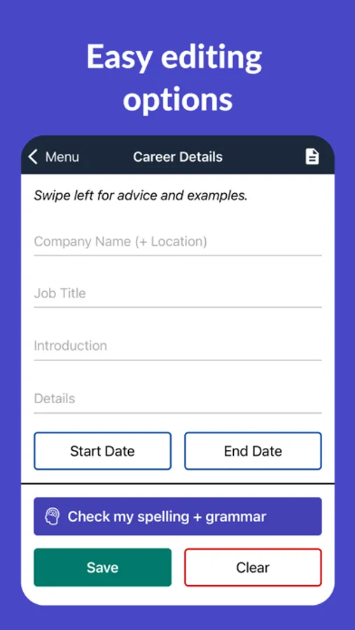 *Easy resume editing options and CV writing tools