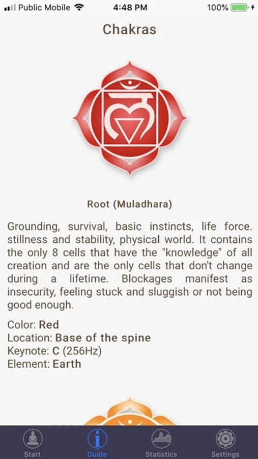 The highlight of this app is the Chakral Journey option where one can move up or down chakras with the crystal bowl sounds attuned to a corresponding frequency to facilitate the purifying and energizing effect of such practice.