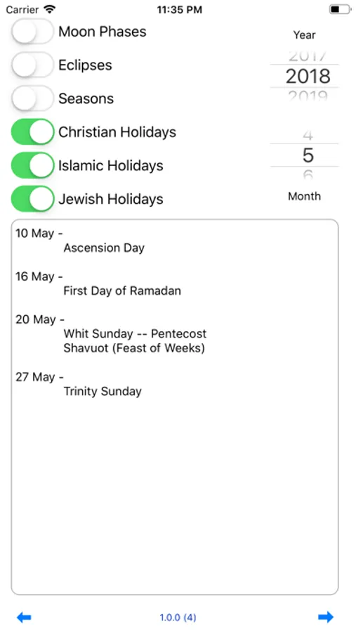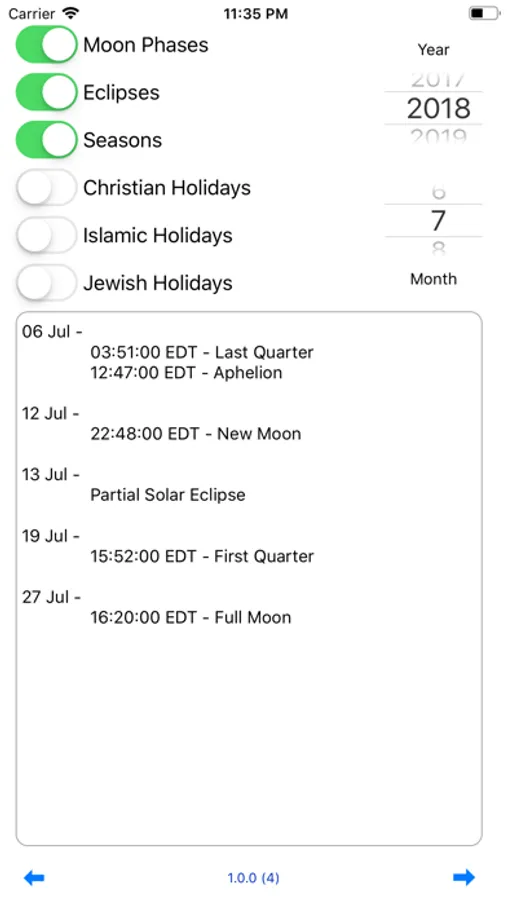 Floating Dates is a simple app to look up moon phases, seasons, and floating holidays. Easily dial any month from 2000 to 2020 and choose which dates you are looking for.