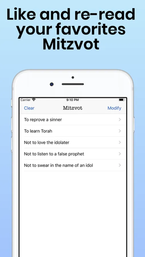 • Like your mitzvot to save them on your phone and read them later