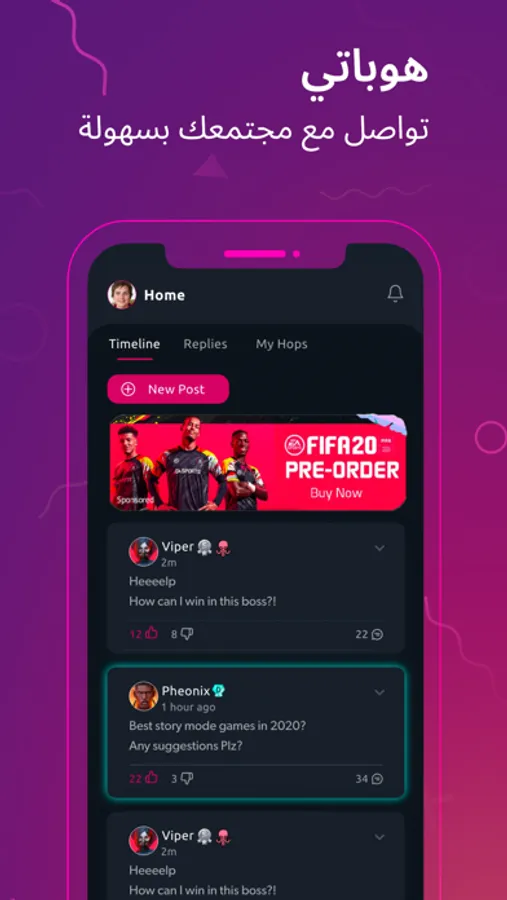 In this community app, you can connect with other Arab gamers to Play together & find skilled teammates, discuss online game winning strategy & achieve victory together & beat the opposing team! with your mates.