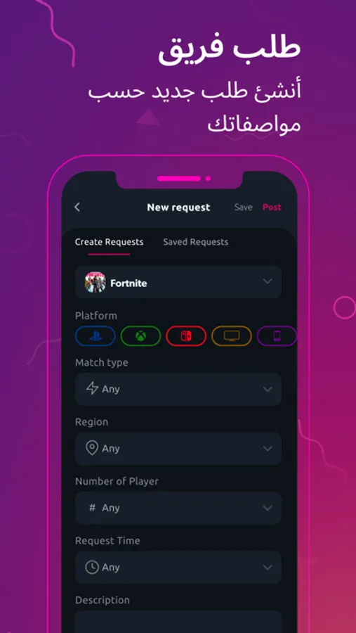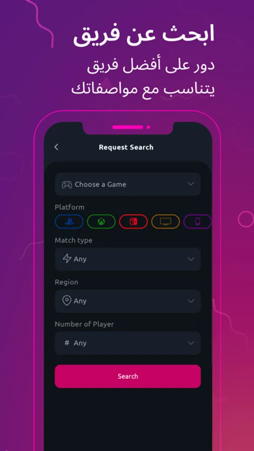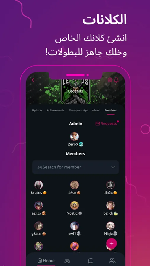 • ابحث عن لاعبين مخصصين، أرسلهم طلبات او وافق على طلباتهم وابني فريقك المميز.