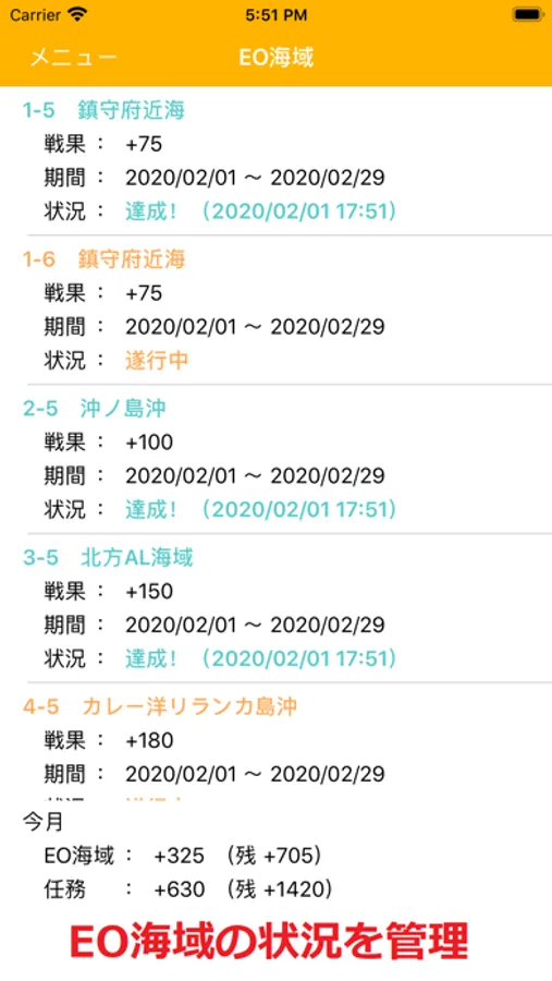 ・EO(Extra Operation)海域のクリア状況や獲得できる戦果が分かります。