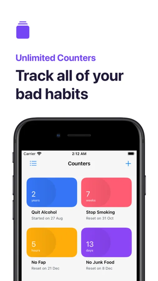 Create a counter for each habit that you are trying to get rid of. If you are trying to quit smoking, create a counter and set the last time you had a cigarette. The app will show you how long it’s been since you smoked for the last time. Tracking your progress will help you stay motivated.