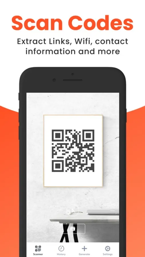 - To scan a QR code or barcode simply open the app, point the camera at the code, and that's it! Our app will automatically recognize the code and open the page with scanned information.
