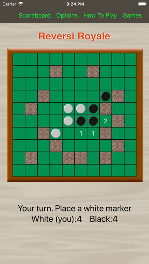 Instead of starting with four markers on an empty board, try setups with walls and islands to block placement of your and your opponent's markers. Some boards have different configurations and starting positions each time.