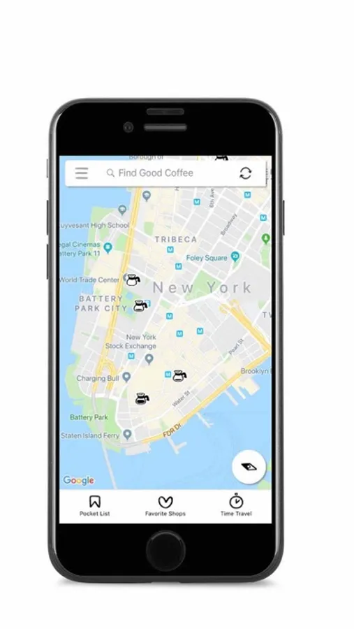 Breakthrough design that changes the way you make travel plans. With time travel mode, finding good coffee for your travel or on-the-go is simple and intuitive.