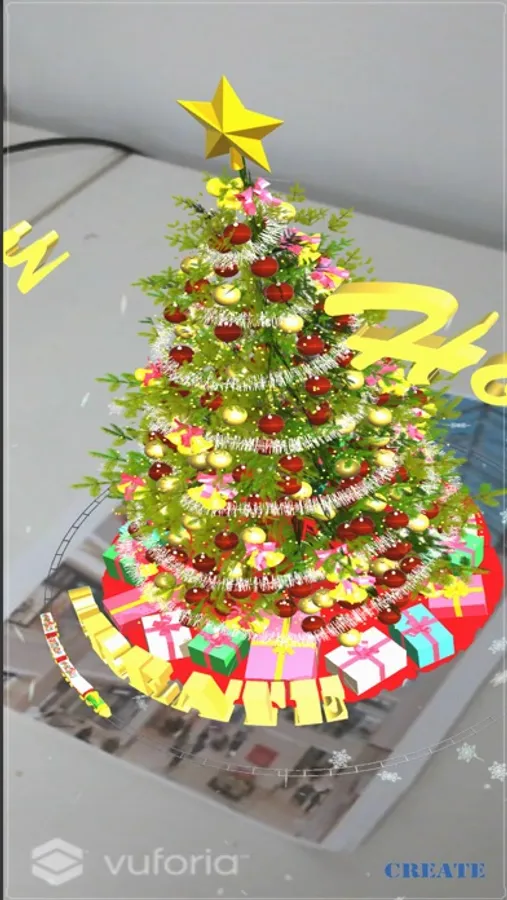 An activation marker will be sent out to users via mail delivery services. If needed, you can download and print the AR marker by clicking on the "download marker" link within the application. After downloading the application, aim your mobile camera at the image on the card to make the 3d model appear. As you hold the camera to the marker, a lively, festive Christmas tree spawns right before your eyes.