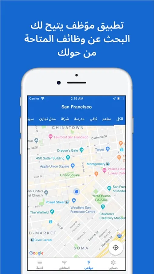 تطبيق متخصص في سوق العمل السعودي ، يعرض لك الوظائف المتاحة حولك بإستخدام خرائط قوقل.