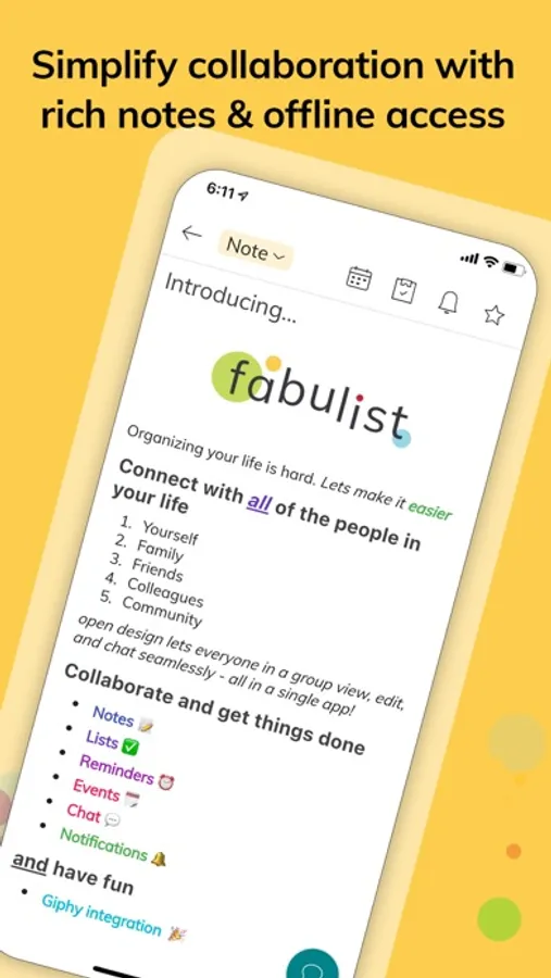 We’ve taken only the best features and created something refreshingly usable. We want Fabulist to feel like your favorite personal apps - todo’s, notes, messages, calendar - but powerful enough for your team.