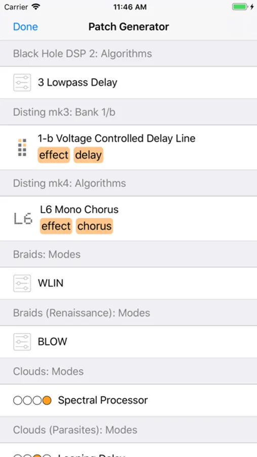 NEW in 2.0 - Patch Generator! SynthModes can generate patch ideas by picking modes for each of your modules. Tap the "Generate Patch" button at the bottom of the mode list. Pull to refresh Patch Generator.