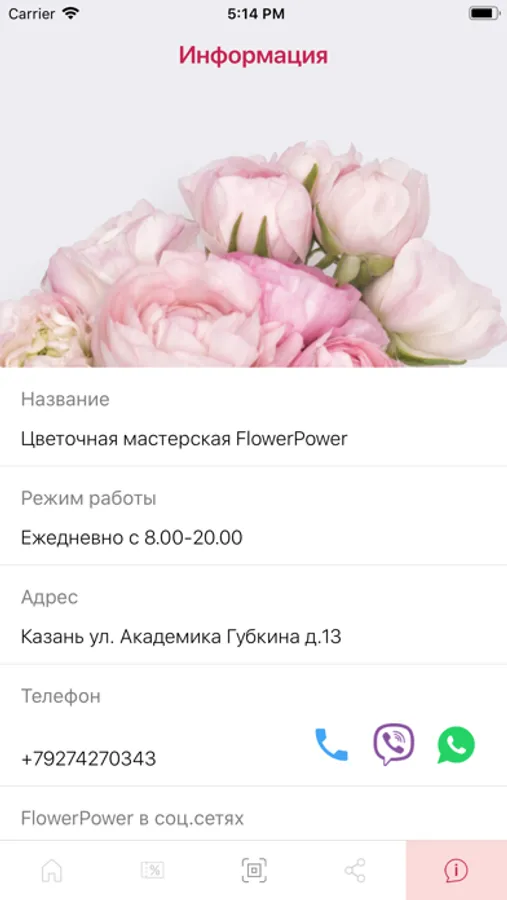 Система лояльности для клиентов цветочной мастерской FlowerPower.